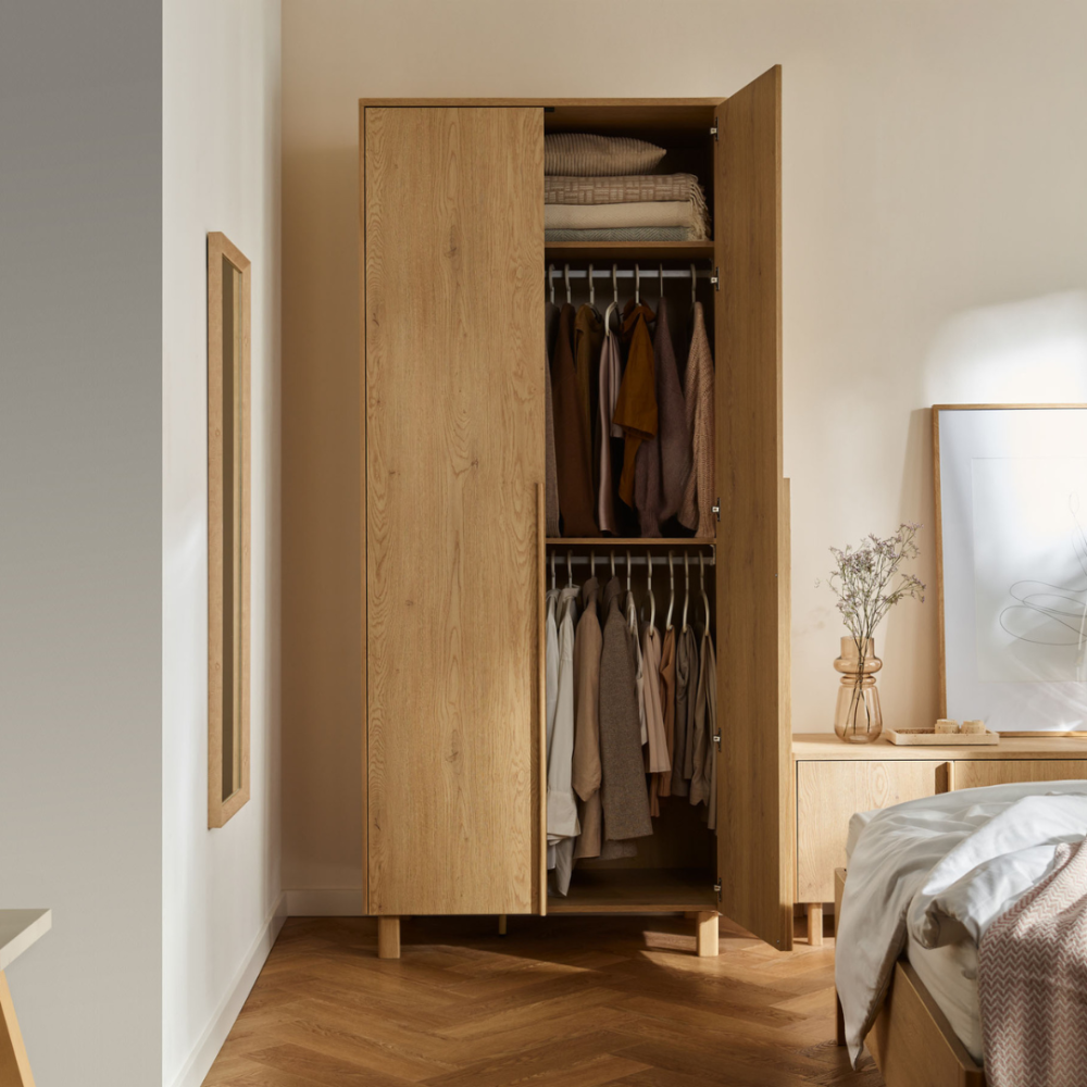 2 durvju skapis no Well kolekcijas ir funkcionāls un kompakts drēbju un mantu uzglabāšanai