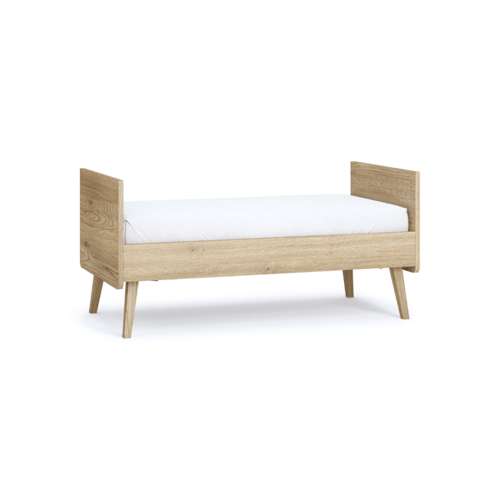 Bērnu gultiņai no Vintage Fresh kolekcijas ir noapaļotas malas un stabilas koka kājas, un tā ir aprīkota ar regulējamu grīdas augstumu.