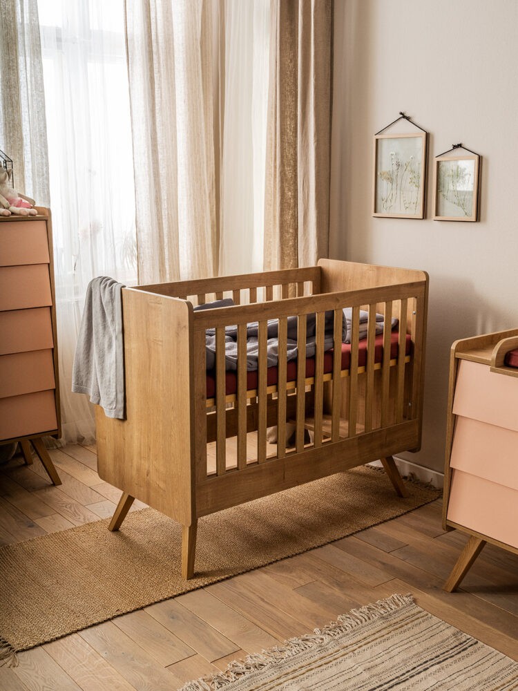 Bērnu gultiņas koka rāmis nodrošina atbilstošu ventilāciju un gaisa cirkulāciju, kas lielā mērā novērš faktoru, kas var izraisīt alerģiju bērniem.