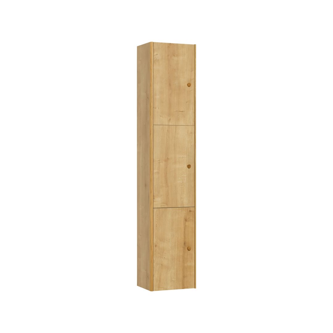 Nature kolekcijas piekaramais stabs ļaus optimāli izmantot šauro telpu viesistabā vai virtuvē. Noslēdzamajos skapīšos var uzglabāt galda piederumus un citus priekšmetus, kurus vērts pasargāt no putekļiem. Pateicoties izsmalcinātajai apdarei, šī mēbele ir tikpat praktiska, cik estētiski pievilcīga. Pakaramais stabs sastāv no trim aizslēdzamiem skapīšiem. Katras no tām durvis atveras neatkarīgi, kas ļauj aizsniegt izvēlētos priekšmetus, neatklājot visas mēbeles saturu. Pateicoties klusajai aizvēršanās mehānismam, varat aizmirst par skaļo aizciršanu. Staba priekšrocība ir tā divpusējais raksturs. Montējot mēbeles, jūs izlemsiet, vai durvis veras pa kreisi vai pa labi. Skapīšu iekšpusē ir plaukti. Augšējā un apakšējā augstuma regulēšana ir iespējama, tāpēc skapī var uzglabāt dažāda izmēra priekšmetus.