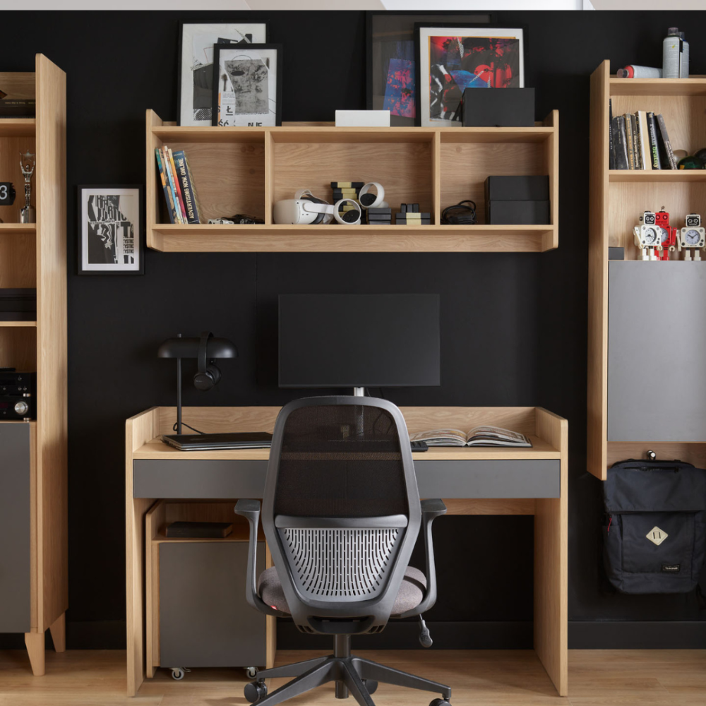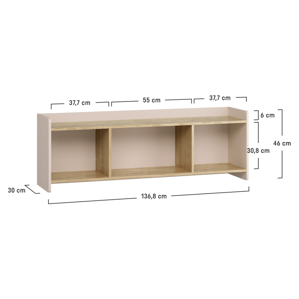 Ar tā palīdzību jūs ne tikai parūpēsieties par kārtību, bet arī estētiski izliksiet savas iecienītākās lietas vai grāmatas, kas nepieciešamas mācībām. Izmantojiet to, lai palielinātu uzglabāšanas vietu un vienlaikus ietaupītu vietu. Grāmatu plauktam ir 3 atvērtas vietas. To var piestiprināt pie sienas atsevišķi vai pa vairākām daļām, radot interesantu kompozīciju. Plaukta augšējo daļu var izmantot kā papildu uzglabāšanas vietu. Slēgtā aizmugure un sāni ļauj izvietot pat mazus priekšmetus. Plaukta aizmuguri un sānus var personalizēt, izvēloties vienu no 3 pieejamajām krāsām: eļļotu ozolu, smilšu bēšu, grafītu.